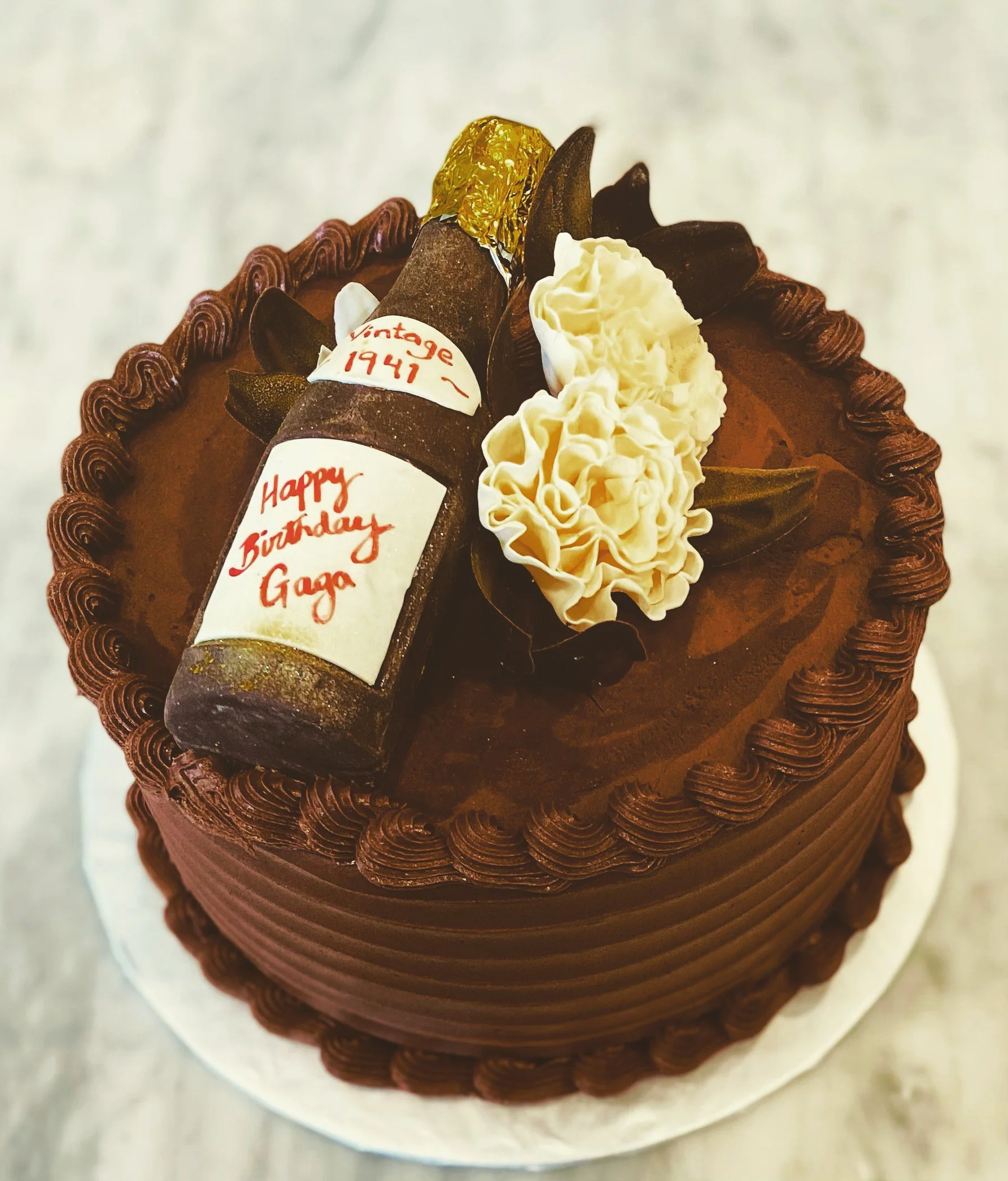 vintage bottle champagne bottle chocolate cake, Marjan Cakes & Desserts, Studio City