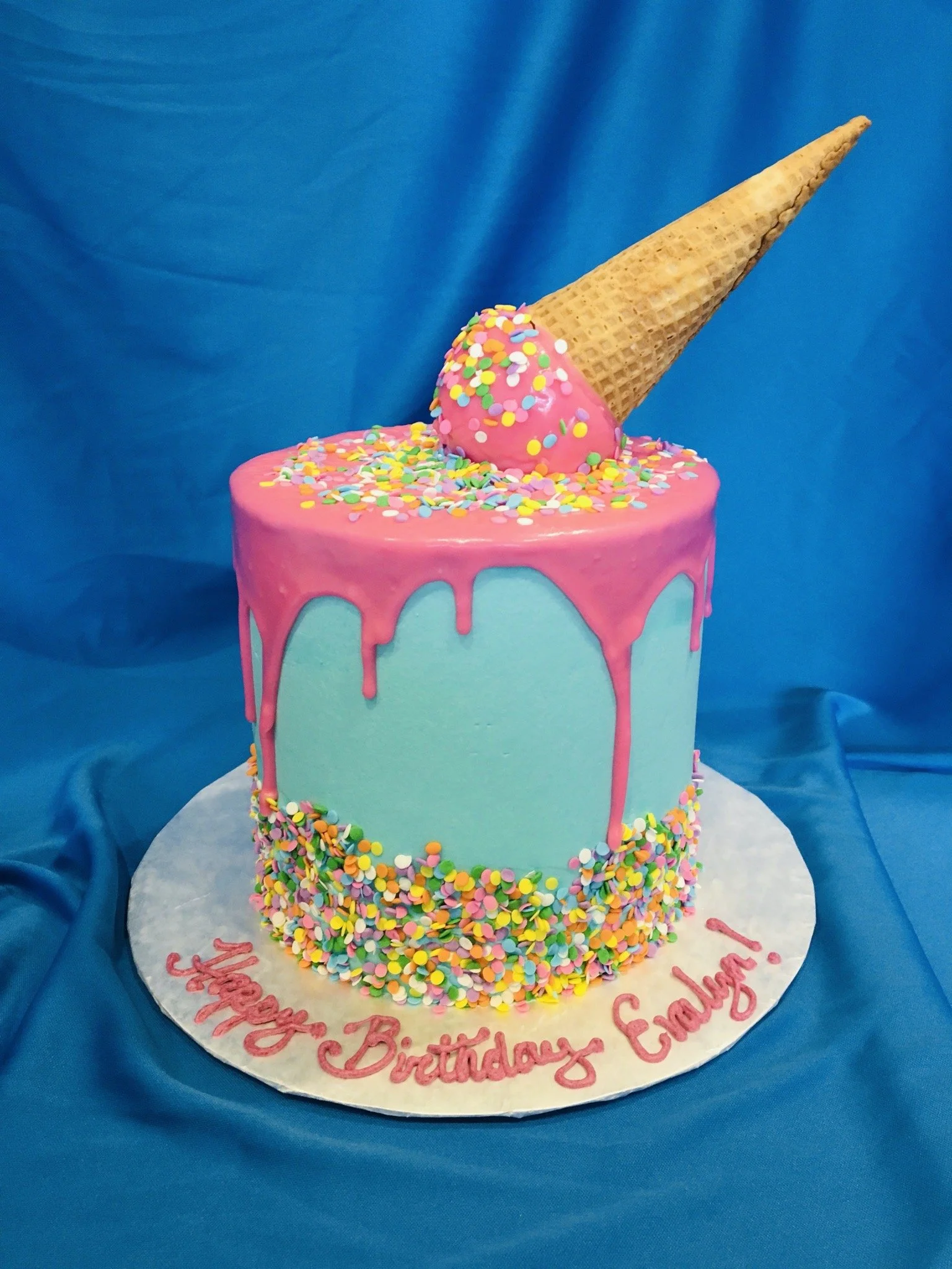 ice cream cone sprinkles drip cake, Marjan Cakes & Desserts, Studio City